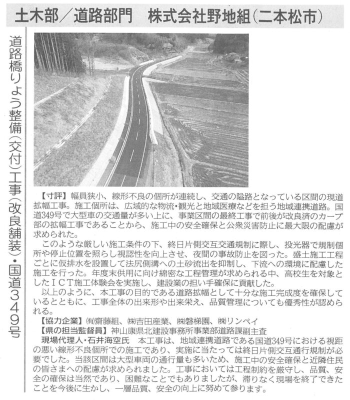 令和7年度福島県優良建設工事受賞 (元請:㈱野地組様 / 弊社:施工協力)